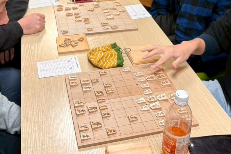 地域の将棋教室『中野将棋ラボ』の方々に講師として来ていただき、月に1回行っています。初心者も経験者も、対局中は次の一手を考えることに集中し、終わった後はお互い笑顔で対局を振り返ります。真剣かつ楽しく将棋に取り組んでいます。